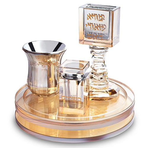סט הבדלה שלם – כולל גביע, נר, בשמים ומעמדים ייעודיים. מושלם כמתנה לבית חדש, או כתוספת מכובדת לבית יהודי.