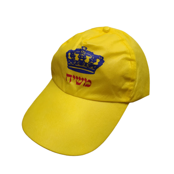 כובע צהוב עם הסמל המפורסם של דגל משיח.