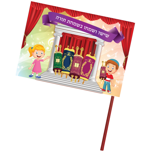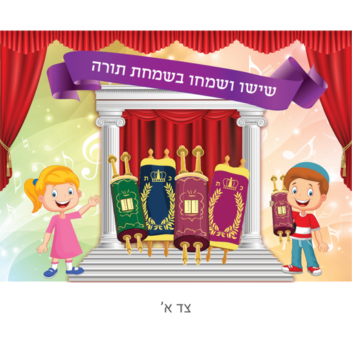 פרטים מלאיםדגל לילדים לשמחת תורה, בעיצוב צבעוני במיוחד. בצד אחד הכיתוב "שישו ושמחו בשמחת התורה", ובצד השני "יום של שמחה טהורה, בו נביא את המשיח במהרה", עם תמ...