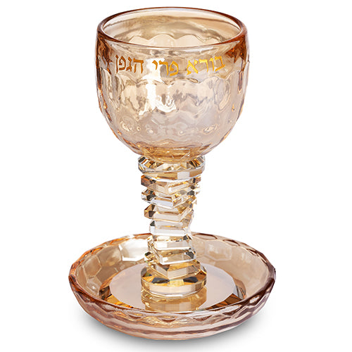 פרטים מלאיםגביע מהודר לקידוש ולהבדלה. עשוי מקריסטל עם אבנים, וחריטה של שמות הנהרות מהתורה. גובה: 16 ס"מ. מכיל: כ-130 מ"ל.