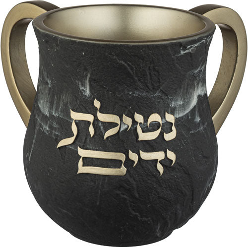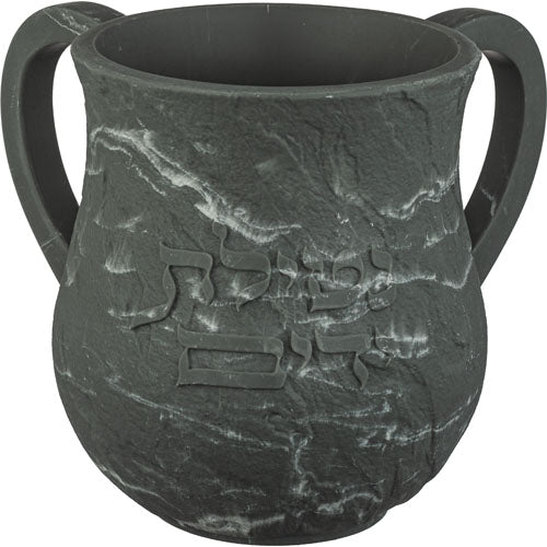 נטלה פולירייזין מהודרת גוון אפור עם כיתוב "על נטילת ידיים" בצבע כסף 14 ס"מ.