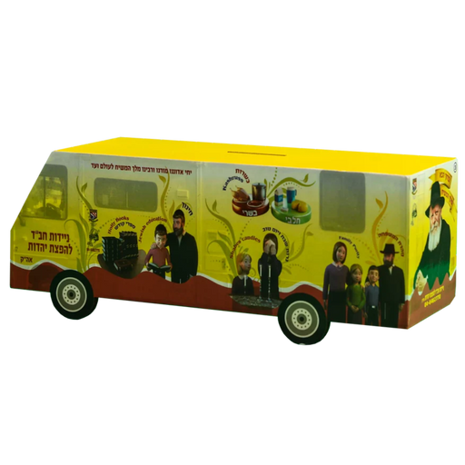 קופת צדקה ייחודית, עשויה מעץ, בדגם של טנק המבצעים המוכר של ניידות חב"ד באה"ק. דלת פתיחה מיוחדת בתחתית. רוחב: 25 ס"מגובה: 10 ס"מעומק: 8.5 ס"מ