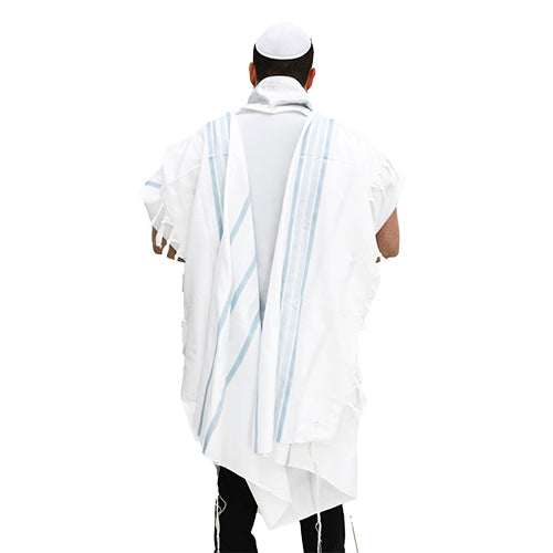 טלית "מופת" חתנים גודל 70 - 185x150 ס"מ פסים תכלת עם עטרה "עיטור"