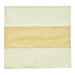 שילוב צבעים קלאסי – גוון שמנת עדין עם פס זהוב במרכז ורקמת זהב מרשימה: "לכבוד שבת ויום טוב".
